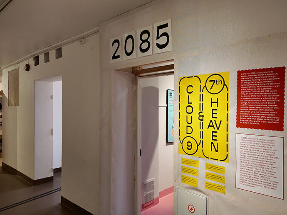 The fear of climate change shapes many ideas about the future, and this is visible in the exhibition. For example, several scenarios are set in an Oslo submerged under water.