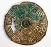 The decorations suggest that the jewellery was made in a Celtic workshop, most likely in Ireland, in the 8th or 9th century. It was originally used as a fitting for a horse’s harness, but holes at the bottom and traces of rust from a needle on the back show that it had probably been turned into a brooch at a later stage.